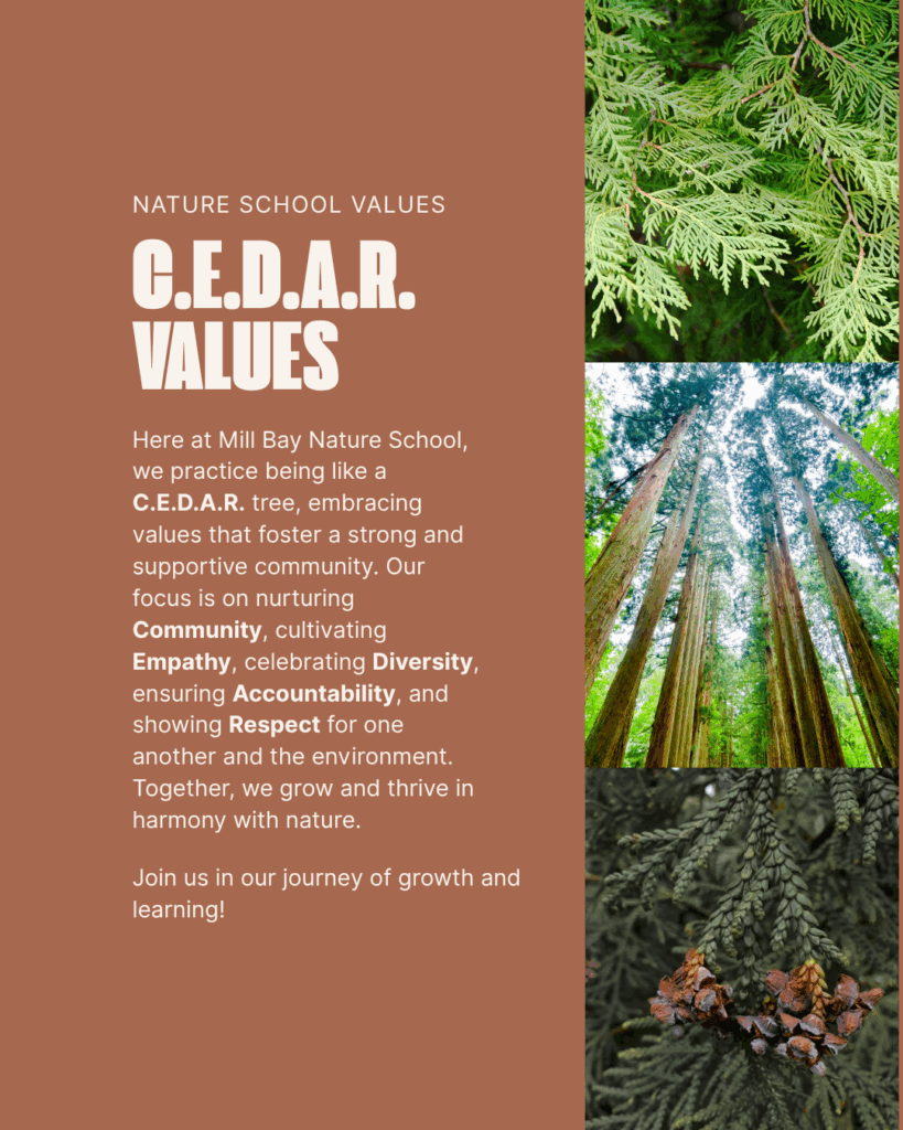At Mill Bay Nature School we stand tall like a Cedar tree: